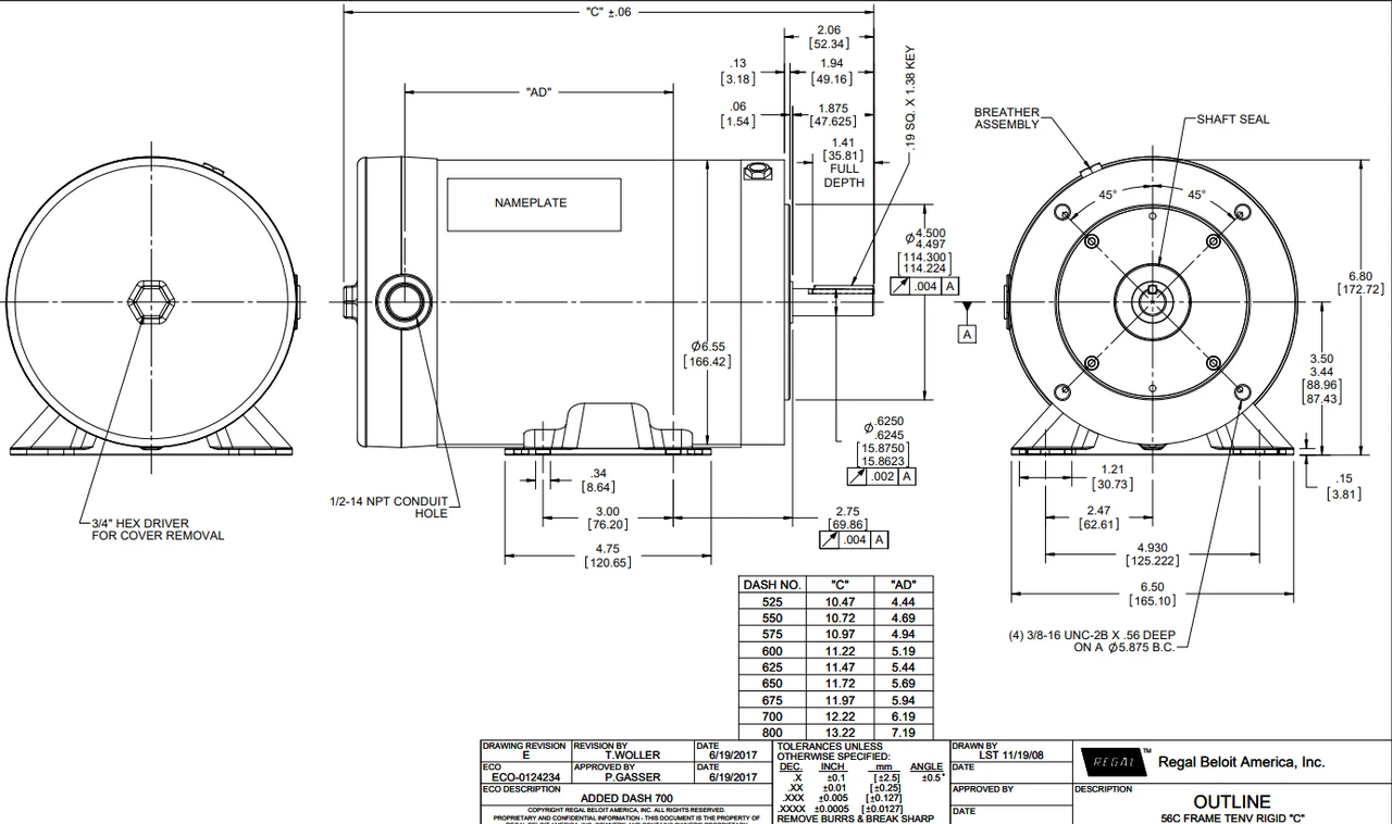- NEMA 56HC frame, C-face, Stainless Steel Keyed Shaft 5/8″ Diameter x 1 7/8″