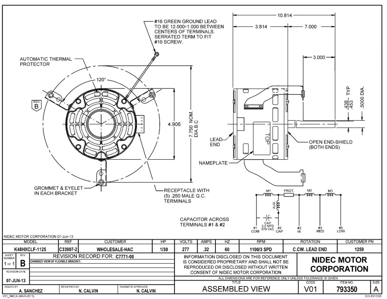 - 1/3 hp 1100 RPM 3-Speed 277V 0.32 amps