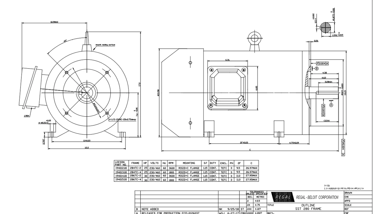 - NEMA 284TC frame, C-face, Stainless Steel Keyed Shaft 1 7/8″ Diameter x 4 5/8″
