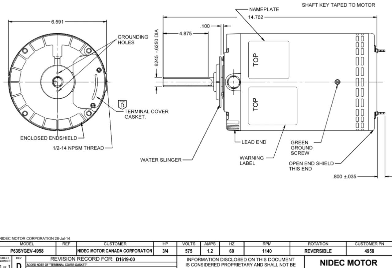 Commercial Condenser Fan Motor. Wiring diagram on motor name plate. OAO = Open Air-Over, P063GEV4958015B