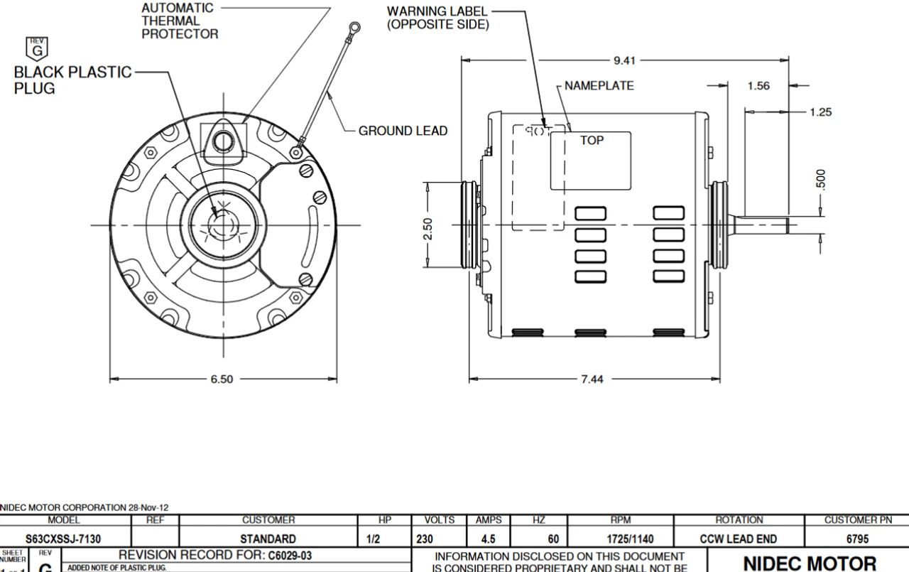 6795 Nidec 1/2 Hp 1800/1200 RPM (2 Speed) 230V 56 Frame ODP Evaporative Cooler Motor