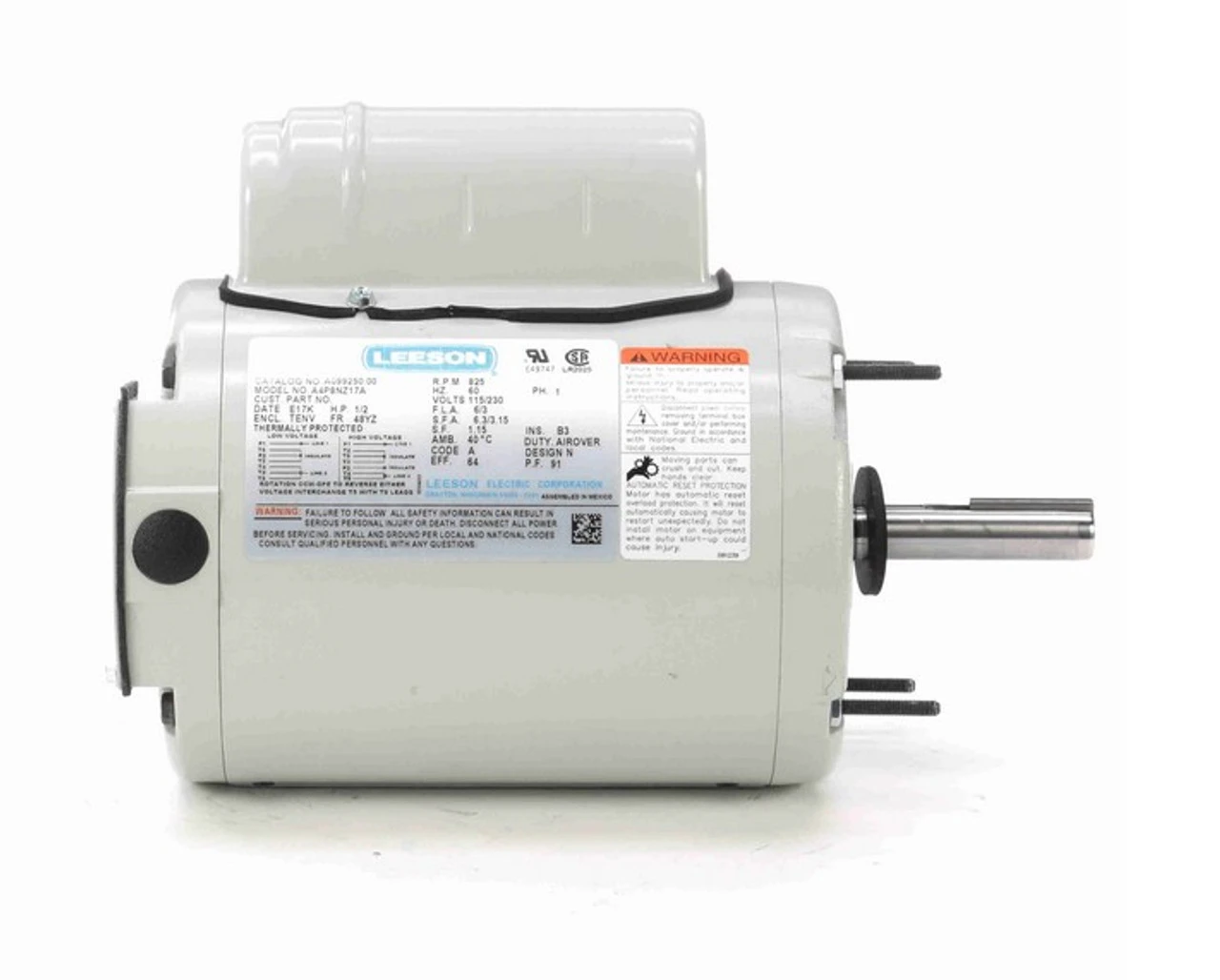 Be the first to review “A099250.00 Leeson 1/2 Hp 900 RPM 115/230V 48YZ Frame TEAO 1-Phase Farm Fan Motor” Cancel reply