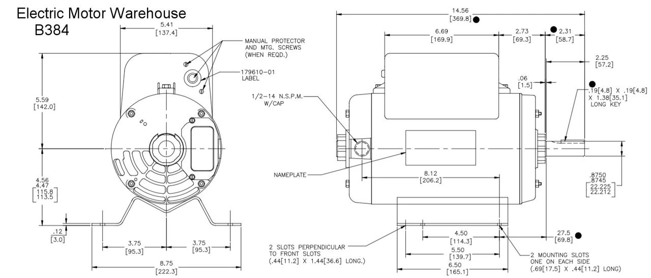 B384 Century 5 HP 3450 RPM R56Y Frame 208-230V Air Compressor Motor - Century # B384 -Motor Electrical Shop B384 dim 65500.1555081895