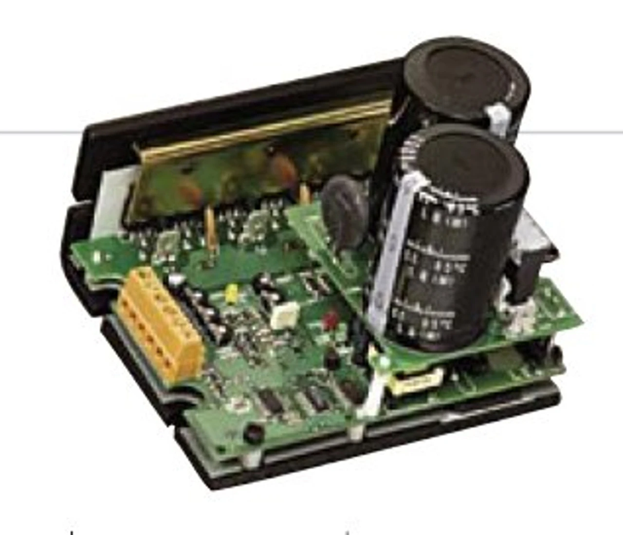 The cost-conscious and compact chassis design of Bison VFD Chassis Drives maintain the industry standard for mounting hole location and the coded LEDs make it easy to visually determine the drive status. With it’s compact design and application flexibility, this is an excellent choice for most AC applications. Easy to Calibrate and Set-up: On board trimmer pot adjustments for boost, maximum speed, acceleration, and deceleration. Torque “Foldback” Feature: Allows up to 200% torque for short periods to overcome intermittent peak loads, then reduces the torque to a preset safe level. Switching Frequency: 16 kHz switching frequency, with option to change between 4 and 16 kHz in the field. A high switching frequency results in quiet motor operation. Adjustments to a lower frequency if desired can be done in the field.