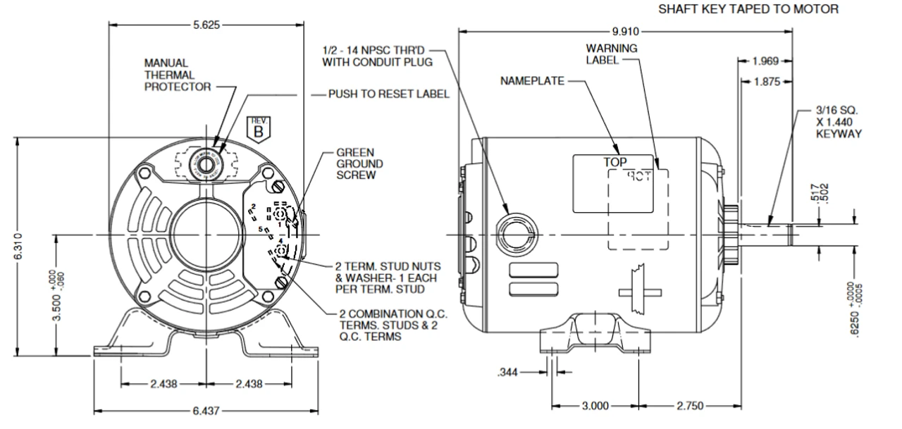 - NEMA 56 Frame, Rolled Steel with Cast Aluminum End Bells, Keyed Shaft 5/8″ Diameter x 1 7/8″
