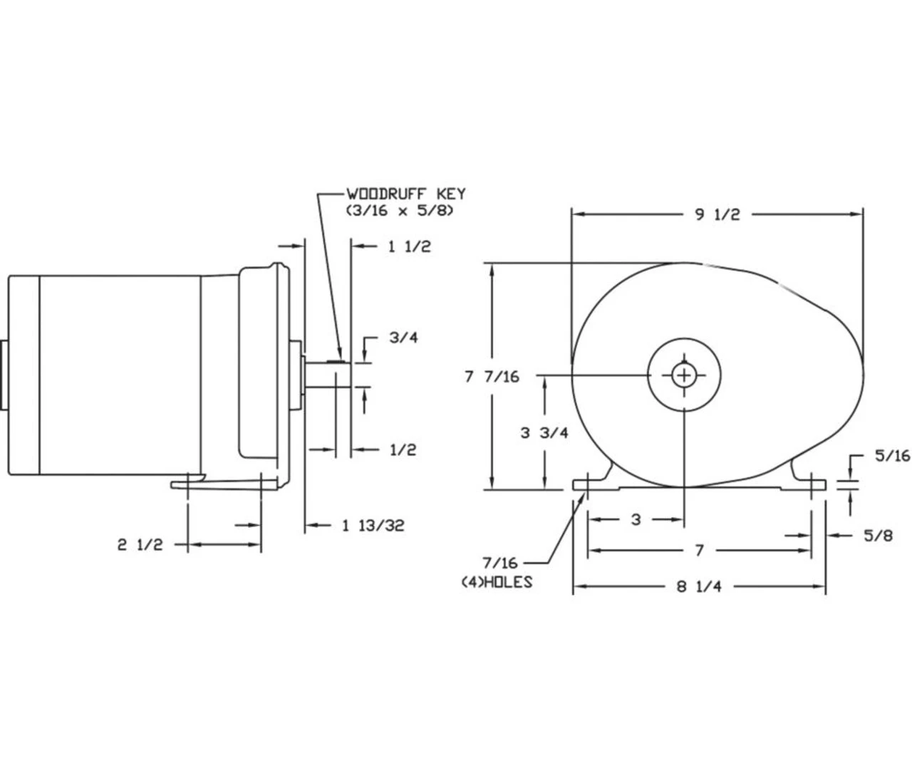 - 1/2 hp, 92 RPM, 8.3 amps, 115 volts, 60HZ.