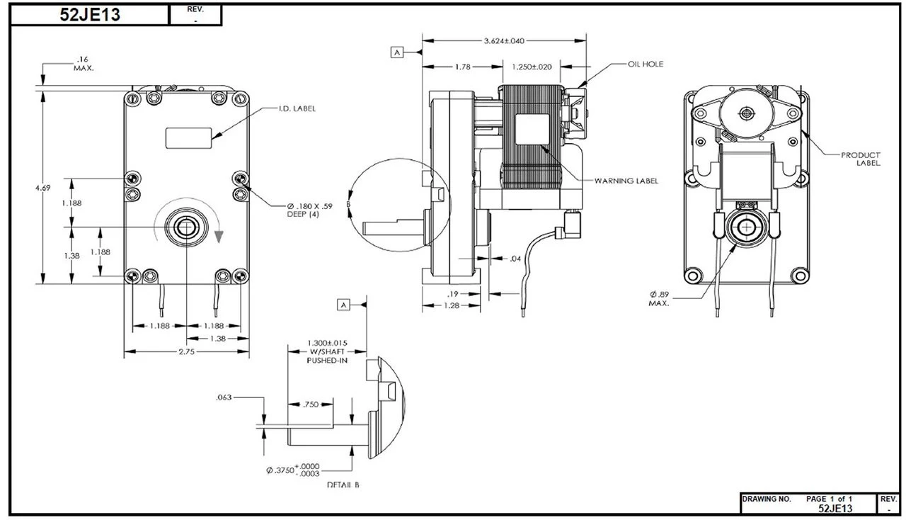 - 1/50 hp, 10 RPM, 1.30 amps, 115 volts 60hz..
