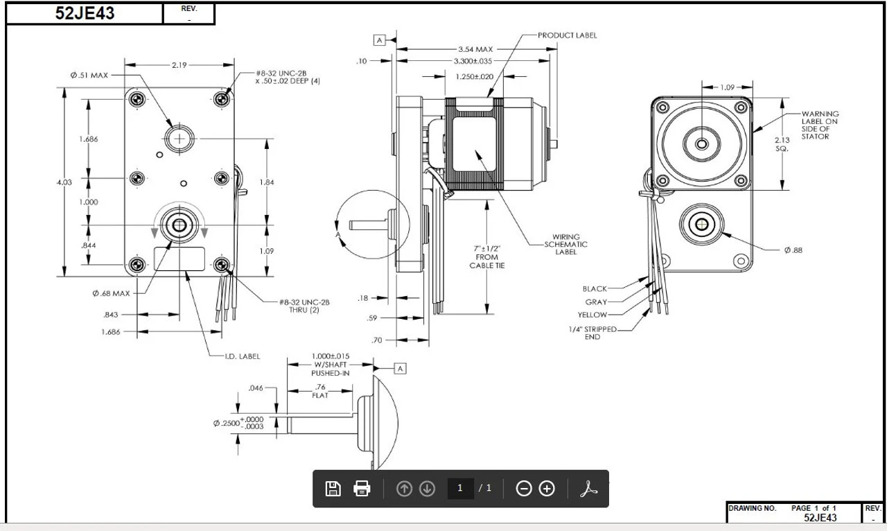 - 1/150 hp, 25 RPM, 0.35 amps, 115 volts 50/60hz.