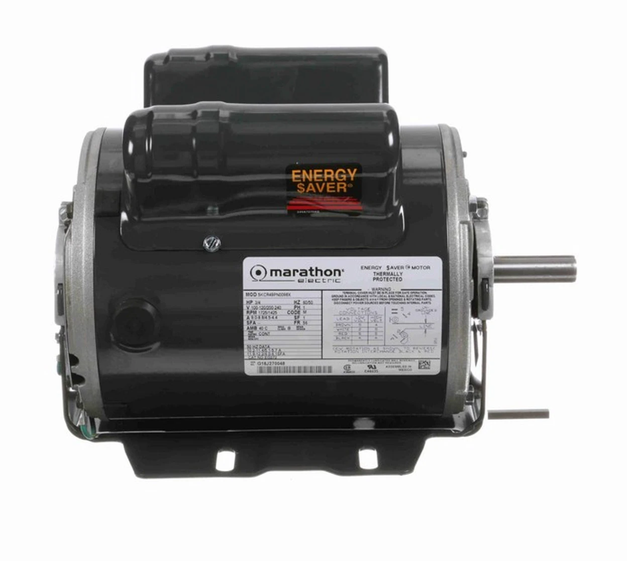 - 3/4 hp 1800/1200 RPM, 9.0/4.5 amps, 100-120/200-240 Volts 60 Hz, Capacitor Start, Capacitor Run