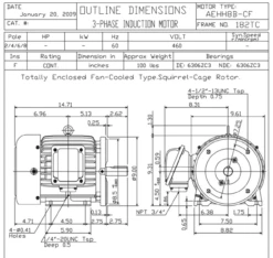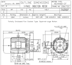 HBV0506C TECO-Westinghouse 50 Hp 1200 RPM 365TC Vertical 460V TEFC Severe Duty Petro-Chem 3-Ph Motor
