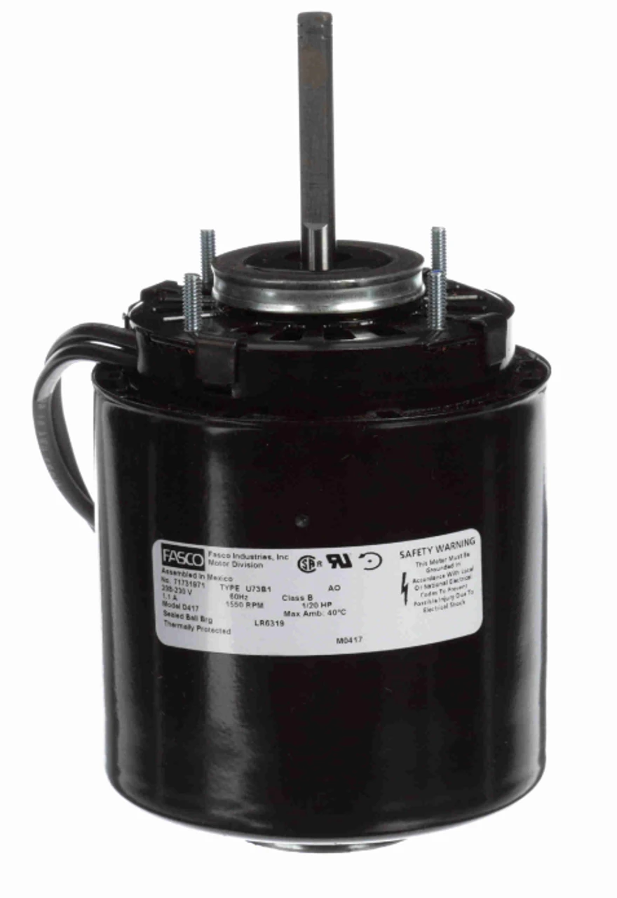 Application Information: Condenser Fan, Cooler: Evaporative, Cooler: Walk-In, Display Case: Refrigerated. These motors often replace unit bearing motors whose rotation is described opposite shaft end. This is different from the Fasco standard, which is determined by looking at shaft end. Extended hubs with rubber rings for base mount.