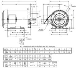 - Repositionable combination base – Holes and slots for NEMA 56, 56H, 143T and 145T mounting can be rotated for NEMA F-2 or F-3 conduit box locations (F-1 standard factory conduit box location)