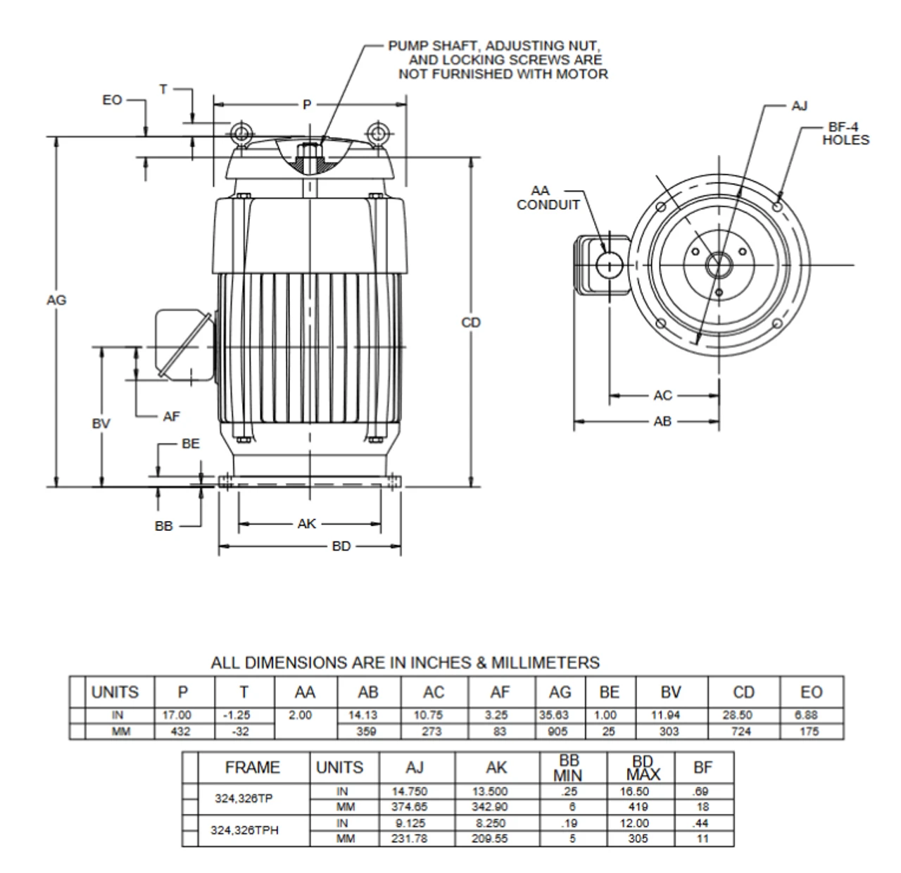 - NEMA 324TP Frame, TUS type, 16 1/2″ Dia. Base, TEFC