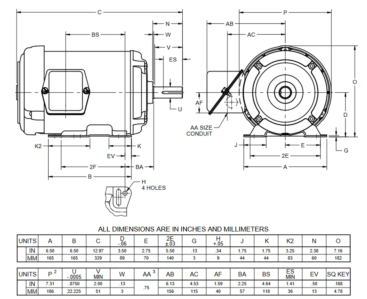 - NEMA 143T frame Keyed Shaft 7/8″ Diameter x 2 1/4″