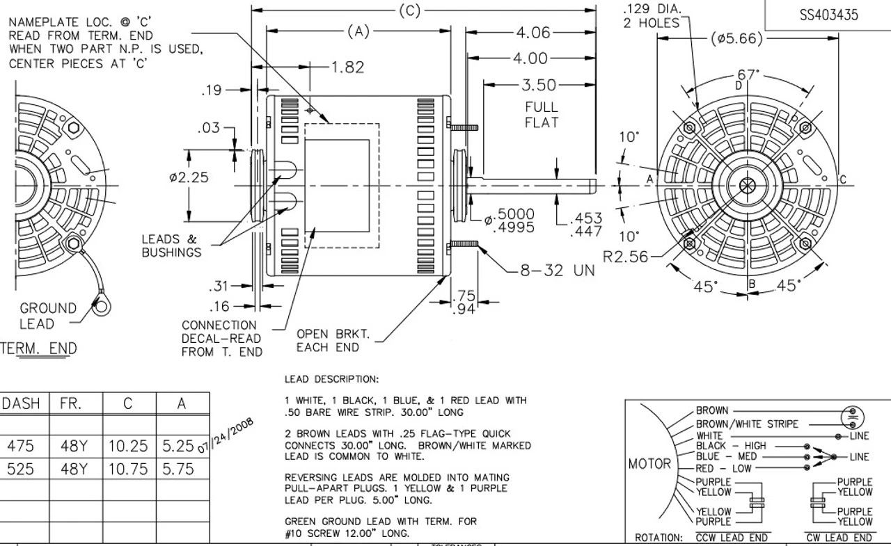 - 3/4 hp 1075 RPM, 5.0 amps, 277 Volts 60 Hz, Permanent Split Capacitor (PSC)